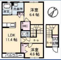 2LDK(洋6.4、LDK11.4 洋4.6) |
